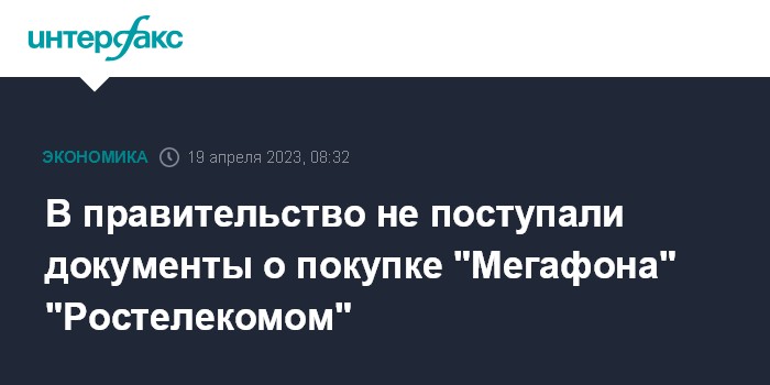 В правительство не поступали документы о покупке "Мегафона" "Ростелекомом"