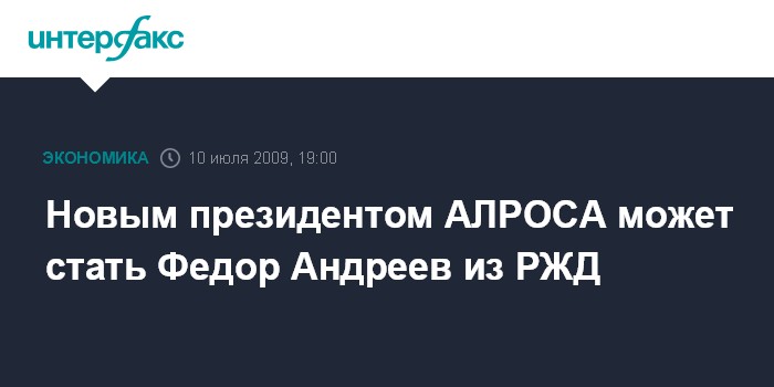 Москва. 10 июля. INTERFAX.RU - Старший вице-президент ОАО "РЖД" Федор Андреев может возглавить АК "АЛРОСА" вместо Сергея Выборнова, сообщил "Интерфаксу" источник, близкий к РЖД.
