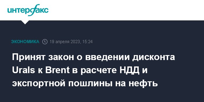 Принят закон о введении дисконта Urals к Brent в расчете НДД и экспортной пошлины на нефть