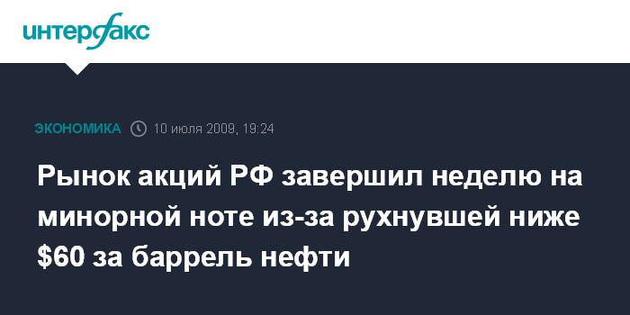 Рынок акций РФ завершил неделю на минорной ноте из-за рухнувшей ниже $60 за баррель нефти