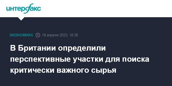 Москва. 19 апреля. INTERFAX.RU - Научно-исследовательская организация British Geological Survey (BGS) выявила в Великобритании крупные участки, где может быть целесообразным поиск критически важных материалов, таких как литий и графит, сообщает сайт BGS.