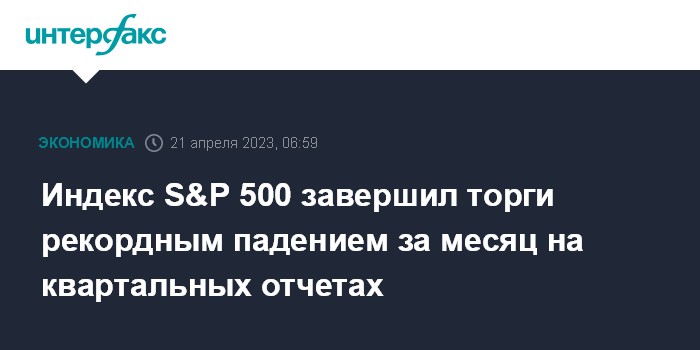 Индекс S&P 500 завершил торги рекордным падением за месяц на квартальных отчетах
