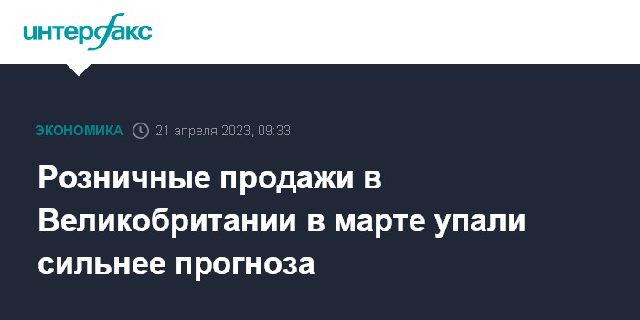 Москва. 21 апреля. INTERFAX.RU - Розничные продажи в Великобритании в марте уменьшились на 0,9% по сравнению с предыдущим месяцем, свидетельствуют данные Национального статистического управления (ONS) страны.
