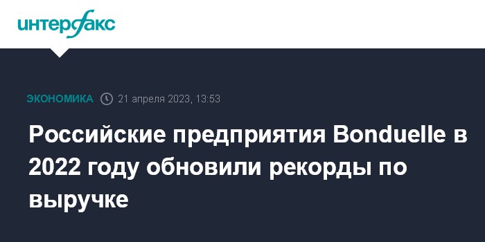 Москва. 21 апреля. INTERFAX.RU - Российские предприятия группы Bonduelle в 2022 году обновили рекорды по выручке, свидетельствуют данные отчетностей компаний по РСБУ.