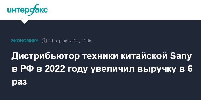 Дистрибьютор техники китайской Sany в РФ в 2022 году увеличил выручку в 6 раз