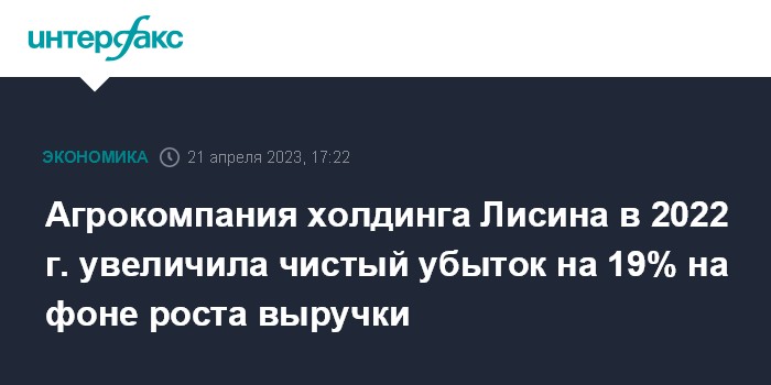 Агрокомпания холдинга Лисина в 2022 г. увеличила чистый убыток на 19% на фоне роста выручки