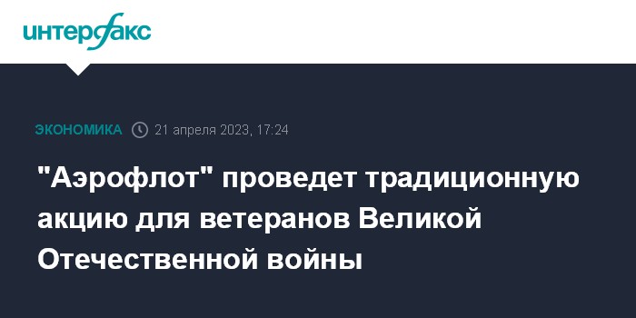Москва. 21 апреля. INTERFAX.RU - Компания "Аэрофлот" в честь 78-й годовщины Победы в Великой Отечественной войне проводит традиционную акцию по предоставлению ветеранам бесплатного перелёта с 2 по 11 мая 2023 года. Дополнительно всем участникам акции авиакомпания вручит сертификат на второй бесплатный авиабилет в течение года.