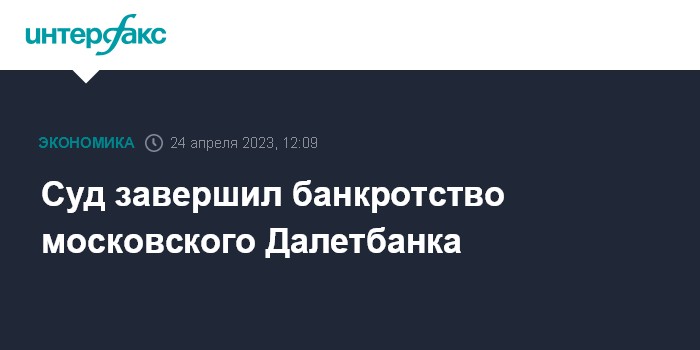Москва. 24 апреля. INTERFAX.RU - Арбитражный суд Москвы 17 апреля завершил процедуру банкротства московского Далетбанка. Об этом говорится в определении суда, размещенном на сайте.
