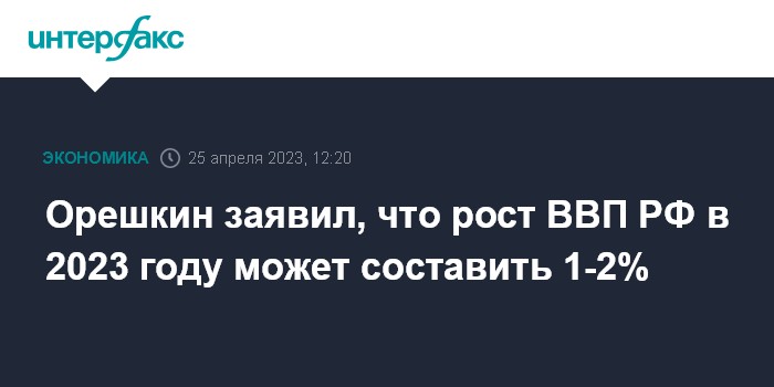 Москва. 25 апреля. INTERFAX.RU - Рост ВВП РФ в 2023 году может составить от 1 до 2%, считает помощник президента РФ по экономическим вопросам Максим Орешкин.
