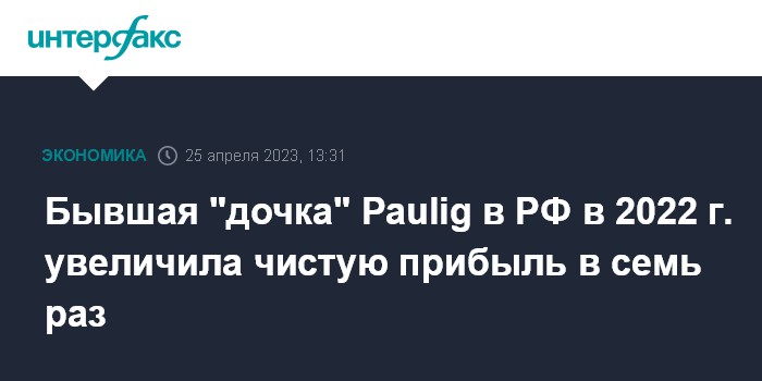 Москва. 25 апреля. INTERFAX.RU - Компания "Милфудс" (бывшая "дочка" ушедшей из РФ финской Paulig) в 2022 году получила чистую прибыль в размере 368,7 млн рублей, что в семь раз больше, чем в 2021 году (52,7 млн рублей), сообщается в отчетности компании.