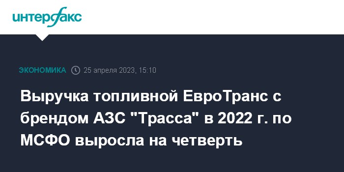 Выручка топливной ЕвроТранс с брендом АЗС "Трасса" в 2022 г. по МСФО выросла на четверть