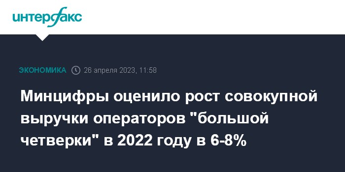 "Год мы, действительно, прошли значительно лучше, чем ожидали в первом квартале (2022 года - ИФ), у нас были разные сценарии драматические. Если говорить про телеком-рынок, то, в целом, он подрос незначительно - на проценты. Но "большая четверка" себя чувствует значительно лучше. Выручка у "большой четверки" больше, чем вырос рынок", - сказал министр.