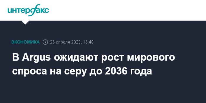 В Argus ожидают рост мирового спроса на серу до 2036 года