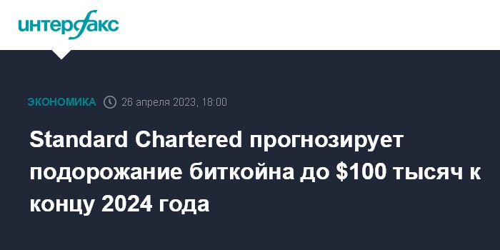 Standard Chartered прогнозирует подорожание биткойна до $100 тысяч к концу 2024 года