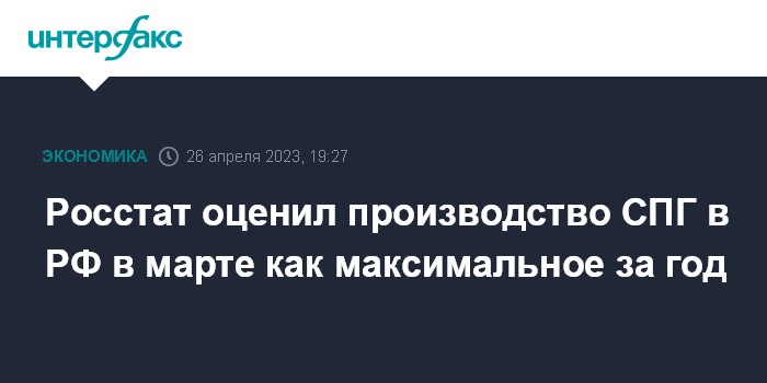 Москва. 26 апреля. INTERFAX.RU - Производство сжиженного природного газа в России в марте 2023 года было максимальным за последние 12 месяцев, сообщил Росстат.