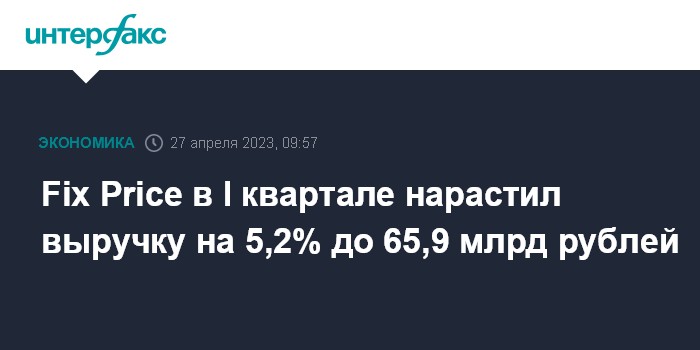 Москва. 27 апреля. INTERFAX.RU - Выручка Fix Price в I квартале выросла на 5,2% по сравнению с аналогичным периодом прошлого года и составила 65,9 млрд рублей, говорится в сообщении компании.