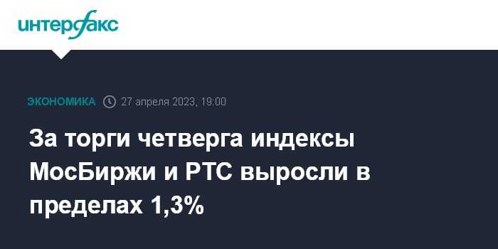 За торги четверга индексы МосБиржи и РТС выросли в пределах 1,3%