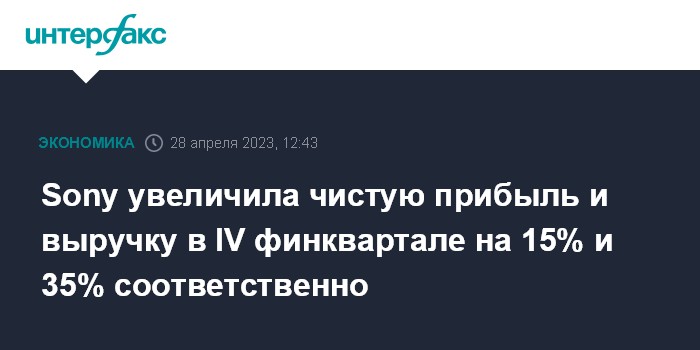 Москва. 28 апреля. INTERFAX.RU - Японская Sony Corp. увеличила чистую прибыль в четвертом финансовом квартале на 15%, выручку на 35%, причем оба показателя превзошли прогнозы.