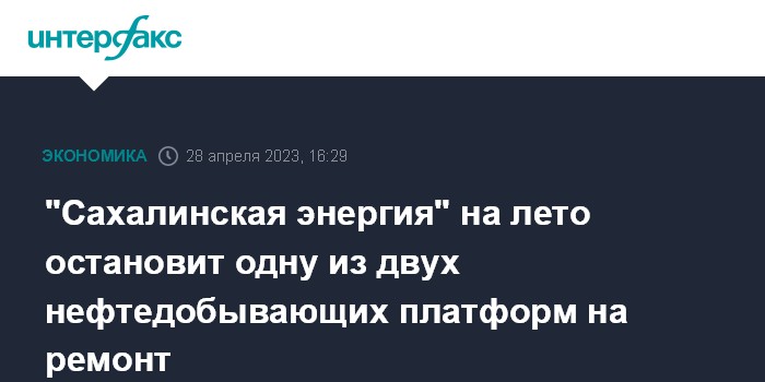 Москва. 28 апреля. INTERFAX.RU - ООО "Сахалинская энергия" (оператор СРП-проекта "Сахалин-2") в мае начнет плановый останов одной из двух своих нефтедобывающих платформ, с июня по сентябрь остановится вторая платформа. Об этом сообщил директор по производству компании Александр Сингуров корпоративной газете "Вести".
