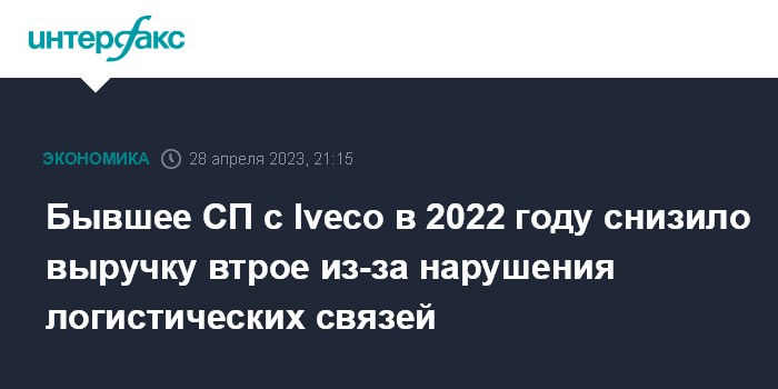 Бывшее СП с Iveco в 2022 году снизило выручку втрое из-за нарушения логистических связей