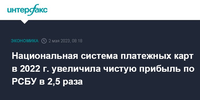 Москва. 2 мая. INTERFAX.RU - Национальная система платежных карт (НСПК) в 2022 году получила чистую прибыль по РБСУ в объеме 25,3 млрд рублей, что в 2,5 раза больше результата 2021 года (9,9 млрд руб.), следует из отчетности компании.