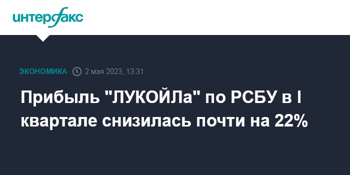 Москва. 2 мая. INTERFAX.RU - Чистая прибыль "ЛУКОЙЛа" по РСБУ в I квартале 2023 года составила 104,287 млрд рублей, что почти на 22% ниже по сравнению с аналогичным периодом прошлого года, говорится в отчете компании.