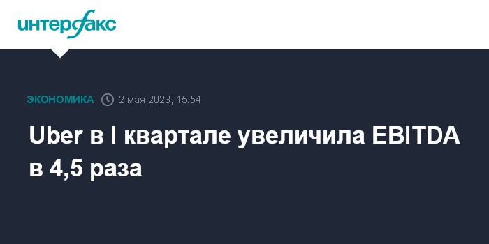Москва. 2 мая. INTERFAX.RU - Американская Uber Technologies, предоставляющая услуги заказа такси и доставки еды, в I квартале увеличила прибыль до налоговых, процентных и амортизационных выплат (EBITDA) в 4,5 раза, что превзошло ожидания.