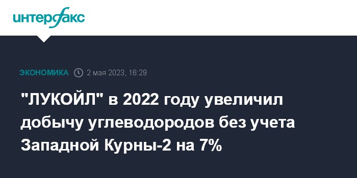 "ЛУКОЙЛ" в 2022 году увеличил добычу углеводородов без учета Западной Курны-2 на 7%