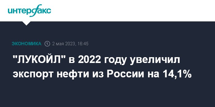"ЛУКОЙЛ" в 2022 году увеличил экспорт нефти из России на 14,1%