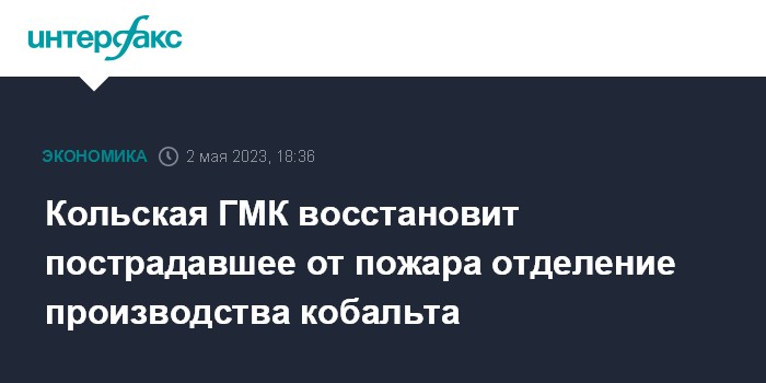 Москва. 2 мая. INTERFAX.RU - АО "Кольская ГМК" (КГМК, "дочка" ГМК "Норникель") планирует на промплощадке в Мончегорске провести реконструкцию экстракционного отделения кобальтового производства после пожара, который произошел в сентябре 2022 года.