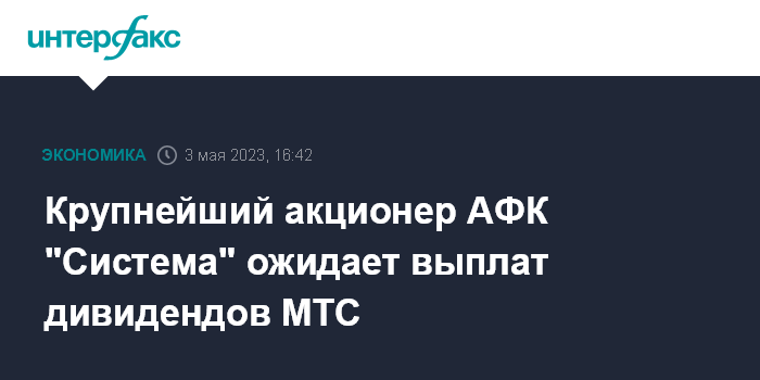 Москва. 3 мая. INTERFAX.RU - Основатель и крупнейший акционер ПАО АФК "Система" Владимир Евтушенков ожидает дивидендных выплат от ключевого актива из портфеля корпорации - ПАО "МТС".