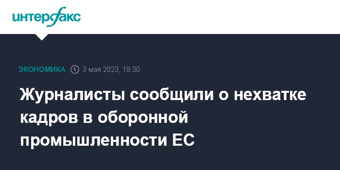 Москва. 3 мая. INTERFAX.RU - Военно-промышленный комплекс стран Евросоюза сталкивается с нехваткой кадров среди рабочих и технических специальностей, сообщает Euractiv со ссылкой на источники в оборонной индустрии.