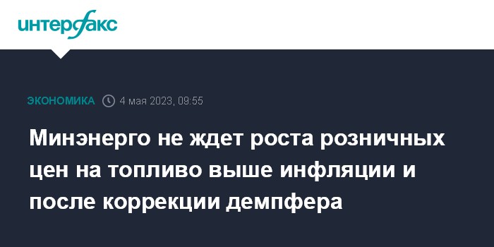 Минэнерго не ждет роста розничных цен на топливо выше инфляции и после коррекции демпфера