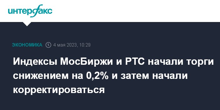 Индексы МосБиржи и РТС начали торги снижением на 0,2% и затем начали корректироваться