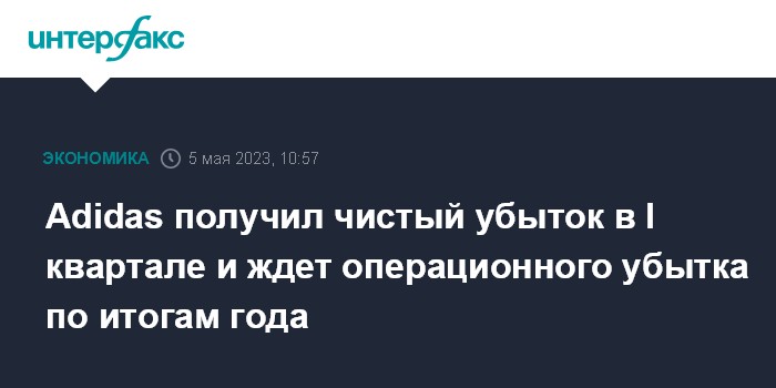 Москва. 5 мая. INTERFAX.RU - Германская adidas AG, второй по величине в мире производитель спортивных товаров, в первом квартале 2023 года получила чистый убыток и спрогнозировала операционный убыток по итогам текущего года в целом из-за масштабных списаний.
