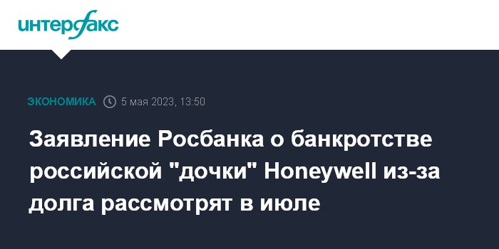 Заявление Росбанка о банкротстве российской "дочки" Honeywell из-за долга рассмотрят в июле