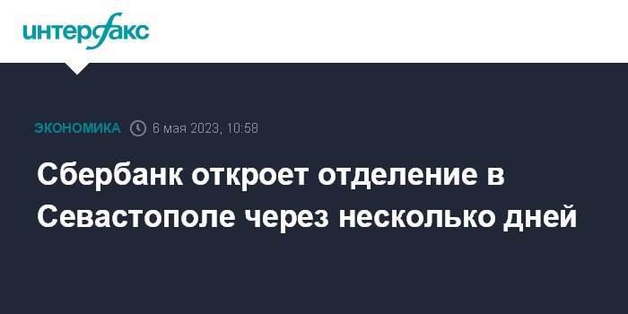 Москва. 6 мая. INTERFAX.RU - Первое отделение Сбербанка в Севастополе откроется через несколько дней, сообщил журналистам заместитель председателя правления Сбербанка Станислав Кузнецов на открытии первого крымского отделения банка в Ялте.