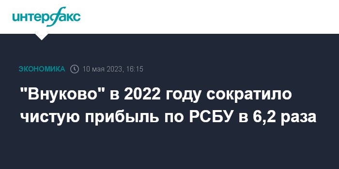 Москва. 10 мая. INTERFAX.RU - АО "Международный аэропорт Внуково" в 2022 году получило 362,4 млн руб. чистой прибыли по РСБУ против 2,3 млрд руб. годом ранее, говорится в отчетности аэропорта.