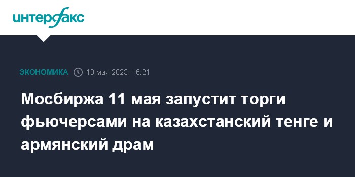 Москва. 10 мая. INTERFAX.RU - Московская биржа с 11 мая начнет торги расчетными фьючерсными контрактами на валютные пары казахстанский тенге/российский рубль и армянский драм/российский рубль, говорится в сообщении биржи.