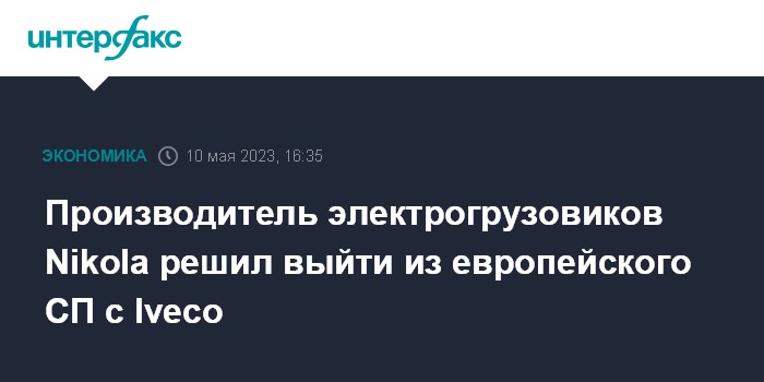 Москва. 10 мая. INTERFAX.RU - Американский производитель электрогрузовиков Nikola Corp. объявил о переориентировании бизнеса на Северную Америку и выходе из европейского совместного предприятия с Iveco Group. Итальянская фирма выкупает долю партнера за $35 млн и 20,6 млн акций Nikola.