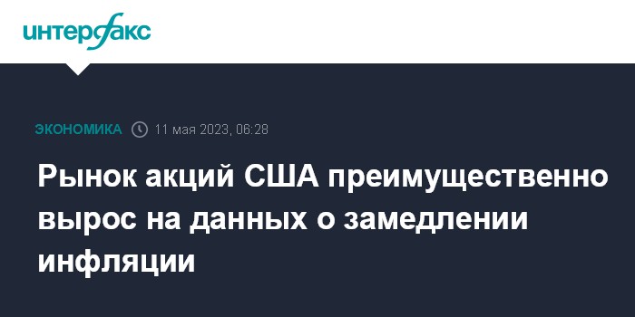 Москва. 11 мая. INTERFAX.RU - Американские фондовые индексы S&P 500 и Nasdaq Composite выросли по итогам торгов в среду, тогда как Dow Jones слабо снизился после публикации данных, указавших на замедление инфляции в Соединенных Штатах в апреле.