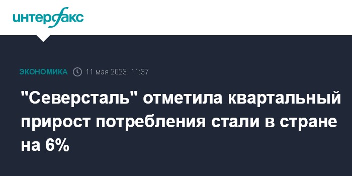 Москва. 11 мая. INTERFAX.RU - В I квартале 2023 года емкость рынка металлопроката в России снизилась на 3% по сравнению с аналогичным периодом 2022 года, до 11,15 млн тонн, говорится в обзоре, подготовленном "Северсталью". При этом квартальный прирост металлопотребления составил 6%.