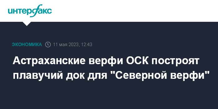 Астраханские верфи ОСК построят плавучий док для "Северной верфи"