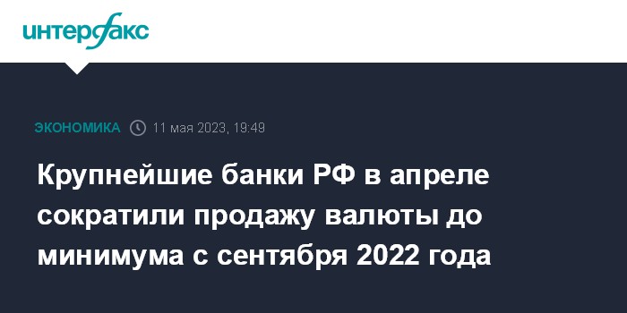 Крупнейшие банки РФ в апреле сократили продажу валюты до минимума с сентября 2022 года