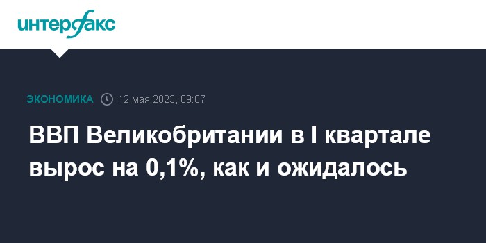 Москва. 12 мая. INTERFAX.RU - В I квартале 2023 года объем британской экономики вырос на 0,1% по сравнению с предыдущими тремя месяцами, свидетельствуют предварительные данные Национального статистического управления (ONS).