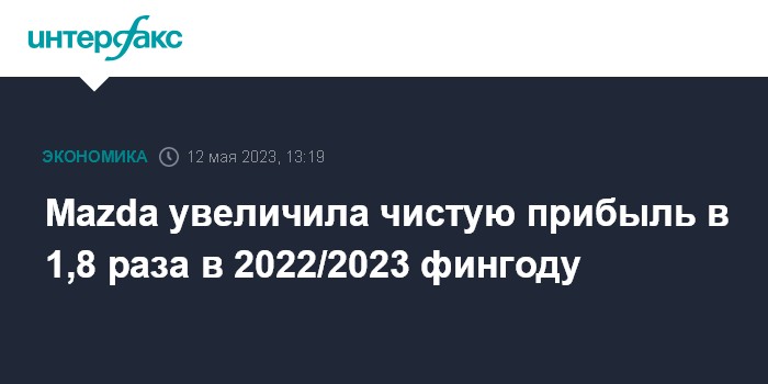Москва. 12 мая. INTERFAX.RU - Японский автопроизводитель Mazda Motor Corp. повысил выручку на 22,6% и чистую прибыль - на три четверти в 2022/2023 финансовом году, несмотря на сокращение производства и поставок в условиях дефицита полупроводников.