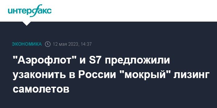 Москва. 12 мая. INTERFAX.RU - Используемый в международной практике "мокрый" лизинг самолетов, когда воздушные суда передаются вместе с экипажем от одной авиакомпании к другой, следует узаконить и в России, считают в крупнейших авиакомпаниях страны - "Аэрофлоте" и S7.