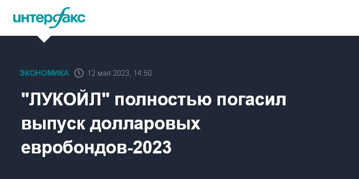 Москва. 12 мая. INTERFAX.RU - "ЛУКОЙЛ" в полном объеме исполнил обязательства по погашению выпуска долларовых еврообигаций-2023, сообщила компания.