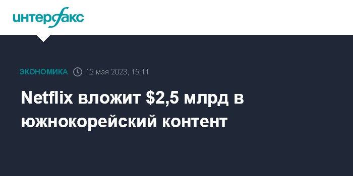 Москва. 12 мая. INTERFAX.RU - Американский Netflix Inc., крупнейший в мире сервис потокового видео по подписке, в ближайшие четыре года инвестирует $2,5 млрд в южнокорейские телесериалы, фильмы и передачи, заявил CNBC вице-президент компании по южнокорейскому контенту Дон Кан.