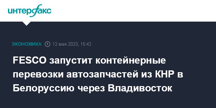 FESCO запустит контейнерные перевозки автозапчастей из КНР в Белоруссию через Владивосток